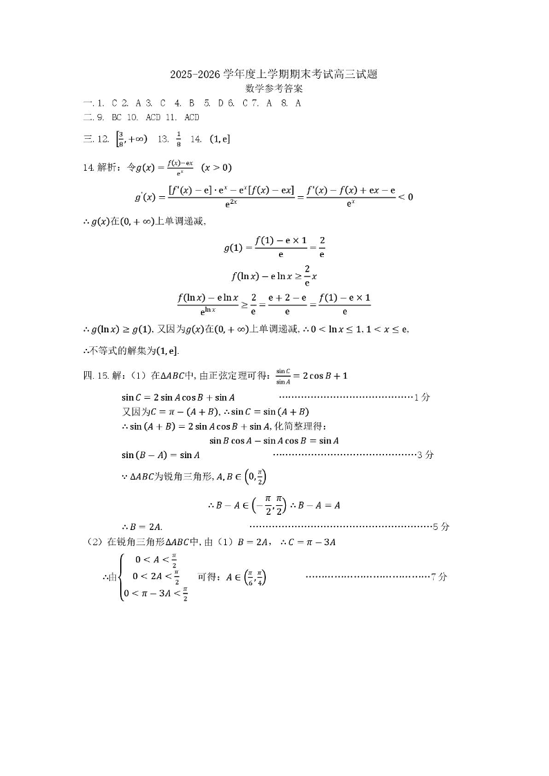辽宁省协作校2025-2026学年度上学期高三年级期末考试 数学答案.pdf