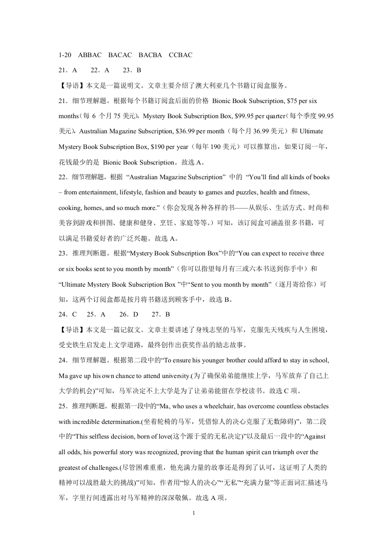 牡丹江二中2025-2026学年度第一学期高三年级期末试题 英语答案.docx