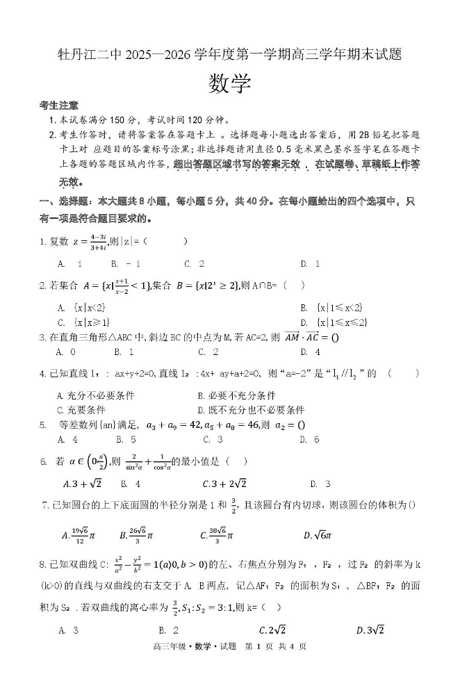 牡丹江二中2025-2026学年度第一学期高三年级期末试题 数学.pdf