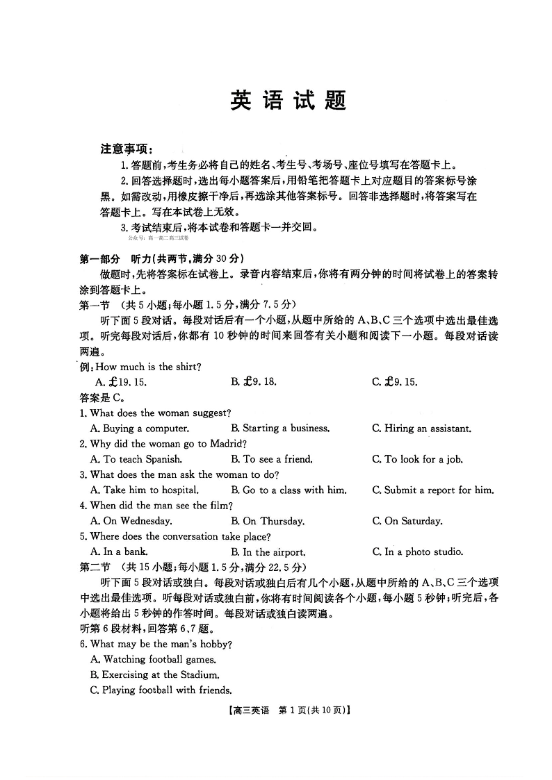 河北省五个一名校联盟2026届高三1月联考 英语试题(含答案).pdf