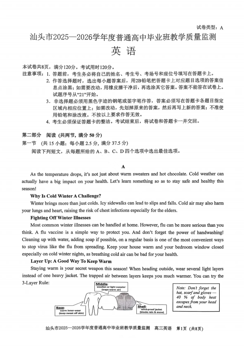 汕头市2025—2026学年度普通高中毕业班教学质量监测 英语.pdf