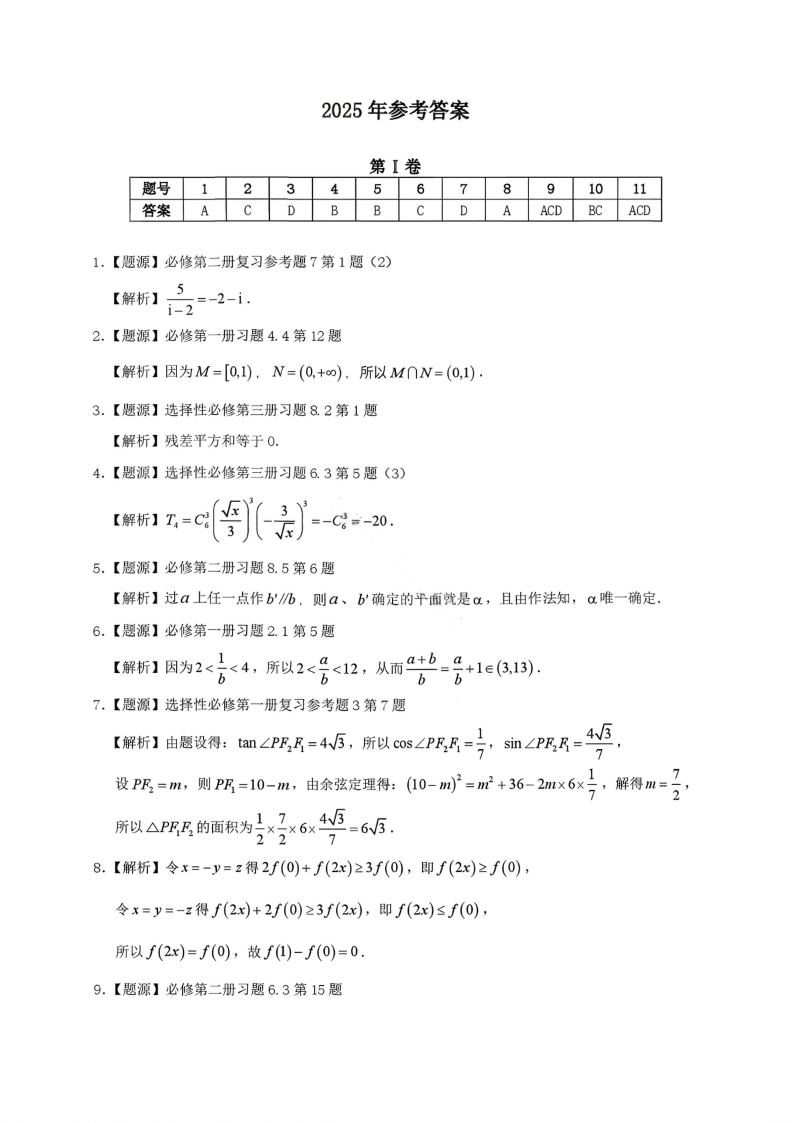 汕头市2025—2026学年度普通高中毕业班教学质量监测 数学答案.pdf