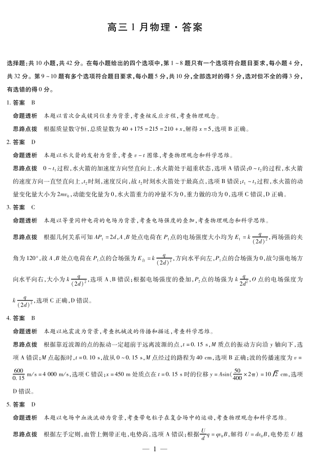 【物理答案】安徽省多校联考2025-2026学年高三上学期1月月考.pdf