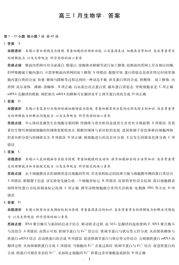 【生物学答案】安徽省多校联考2025-2026学年高三上学期1月月考.pdf