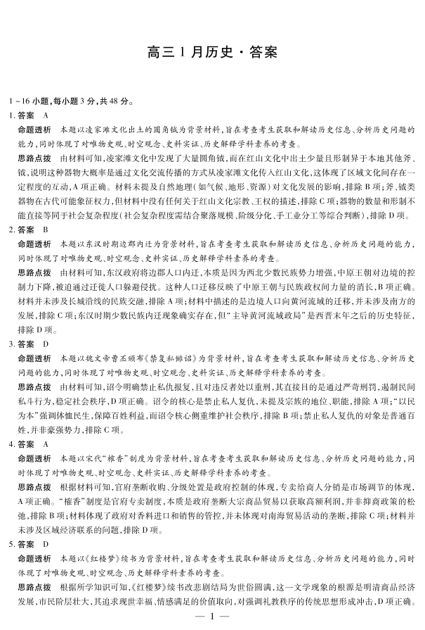 【历史答案】安徽省多校联考2025-2026学年高三上学期1月月考.pdf