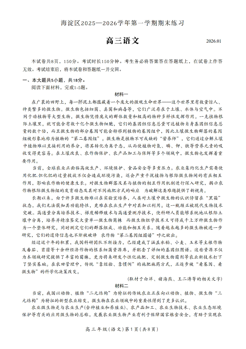北京市海淀区2025一2026学年第一学期期末练习 语文.pdf
