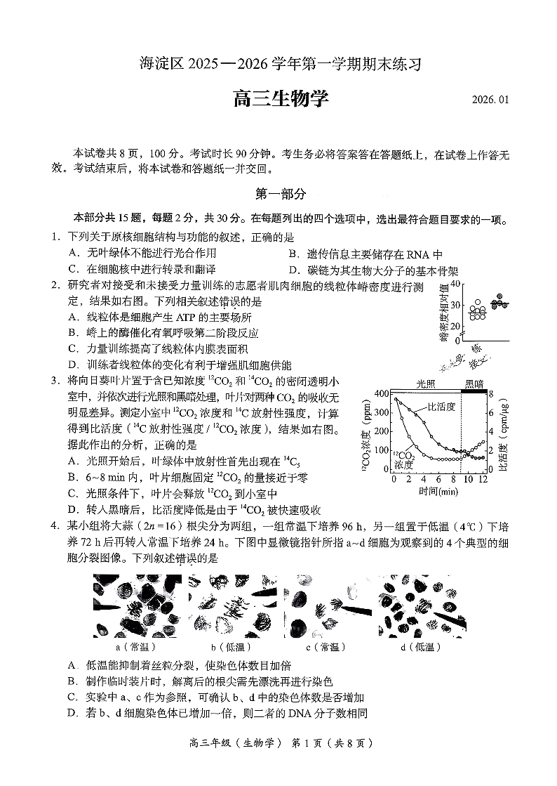 北京市海淀区2025一2026学年第一学期期末练习 生物.pdf