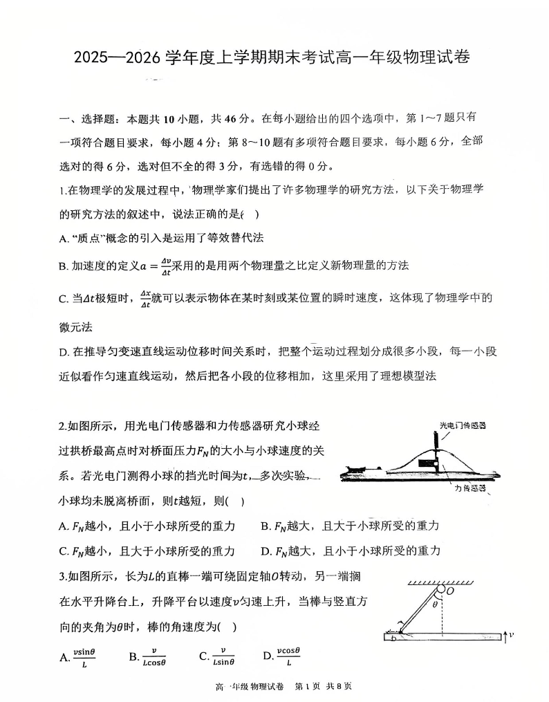 辽宁省五校协作体2025-2026学年度高一年级上学期期末考试 物理试题(含答案).pdf