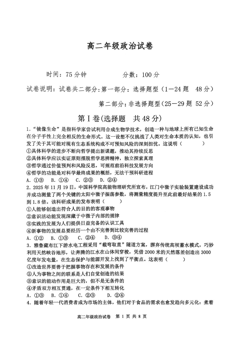 辽宁省沈阳市五校协作体2025-2026学年高二上学期期末考试 政治试题(含答案).pdf