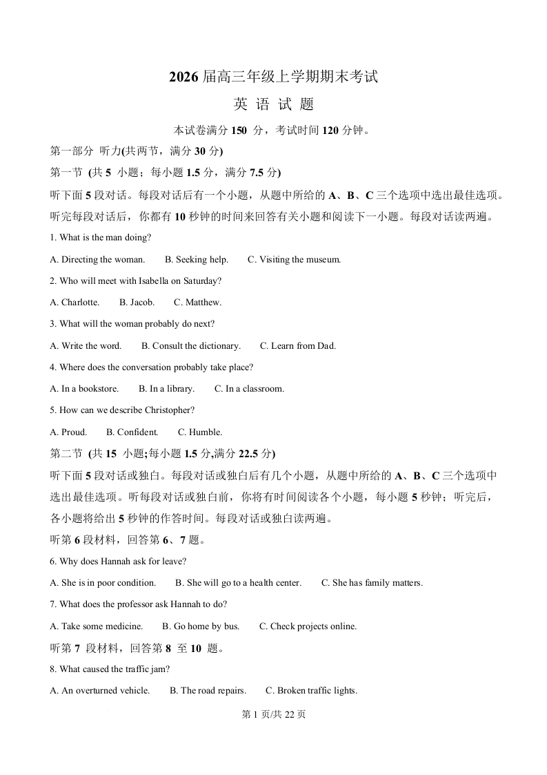 河北省保定市部分高中2026届高三上学期1月期末考试 英语答案.docx