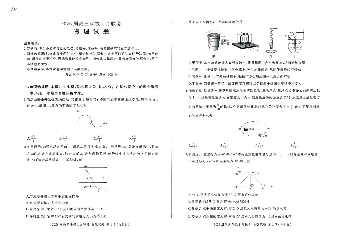 河南省百师联盟2025-2026学年高三上学期1月期末联考 物理.pdf
