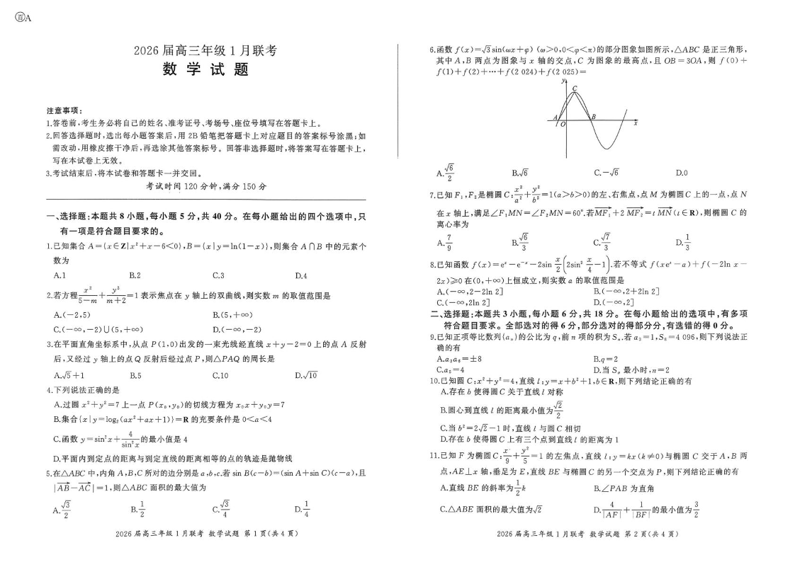 河南省百师联盟2025-2026学年高三上学期1月期末联考 数学.pdf
