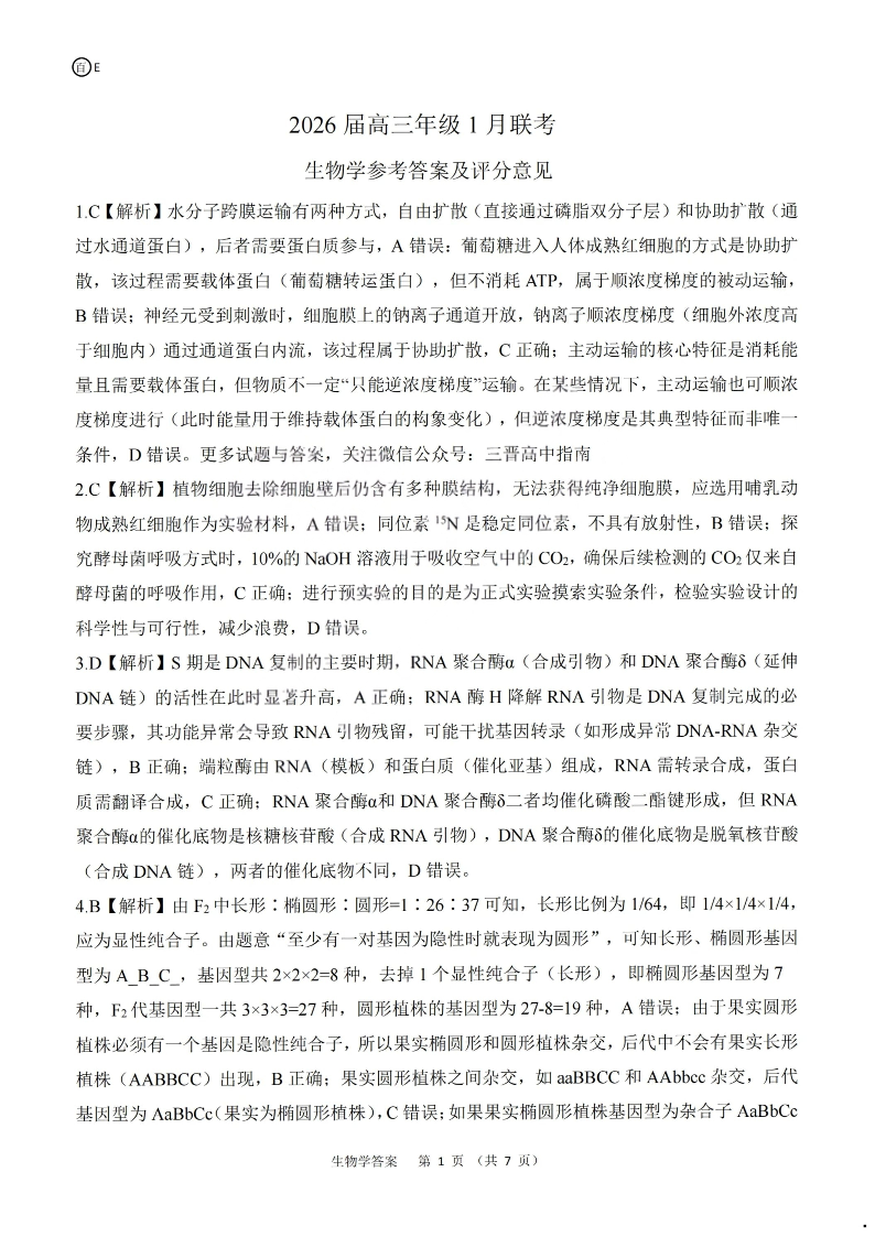 河南省百师联盟2025-2026学年高三上学期1月期末联考 生物答案.pdf