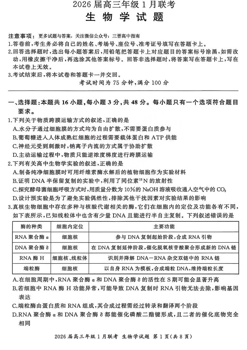 河南省百师联盟2025-2026学年高三上学期1月期末联考 生物.pdf