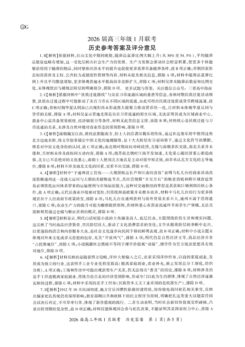 河南省百师联盟2025-2026学年高三上学期1月期末联考 历史答案.pdf
