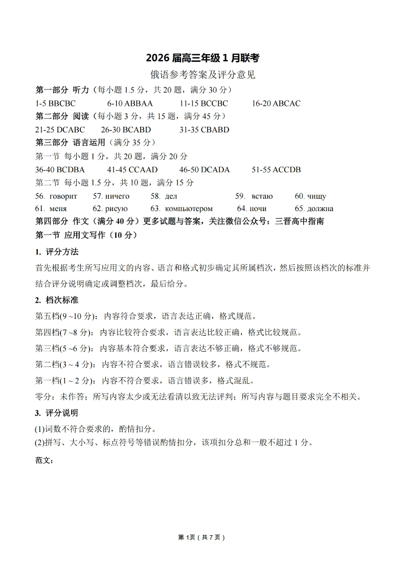 河南省百师联盟2025-2026学年高三上学期1月期末联考 俄语答案.pdf