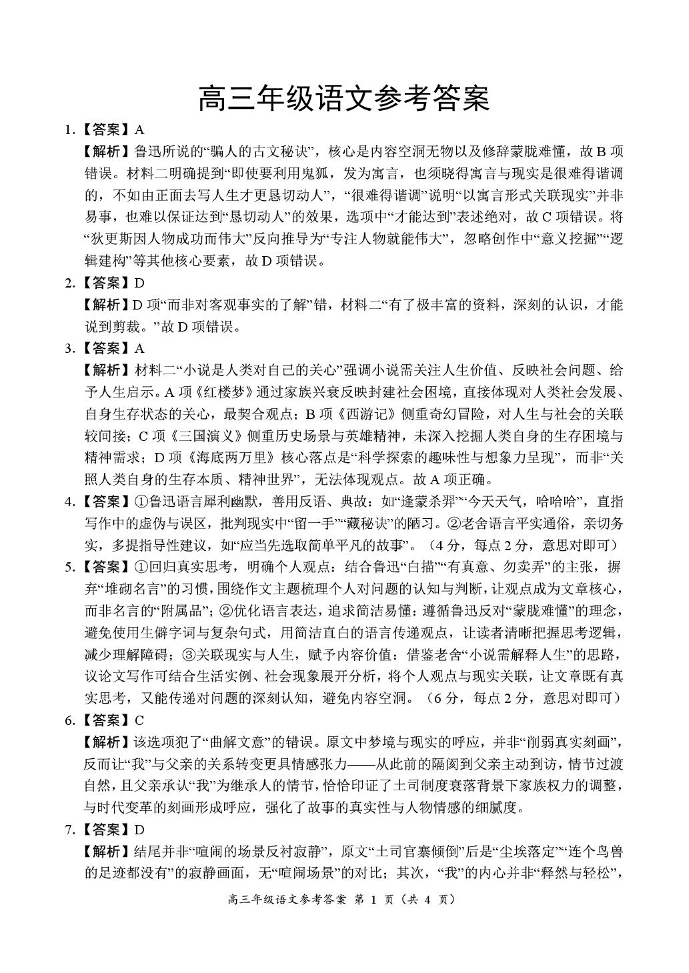 河南省南阳市六校联考2026届高三上学期1月期末考试 语文答案.pdf