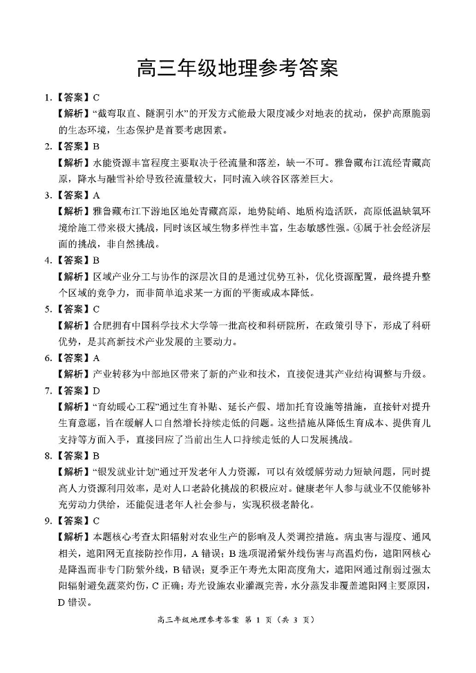 河南省南阳市六校联考2026届高三上学期1月期末考试 地理答案.pdf