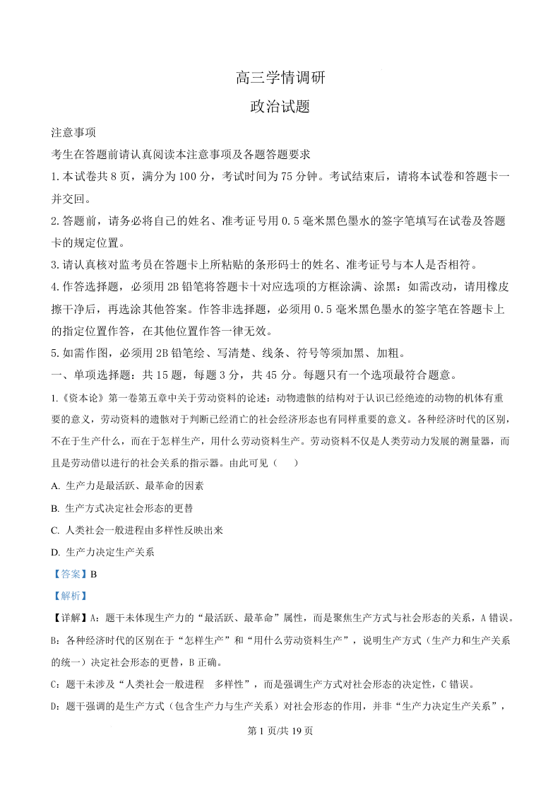 江苏省镇江市四校联考2026届高三上学期1月学情调研 政治答案.docx
