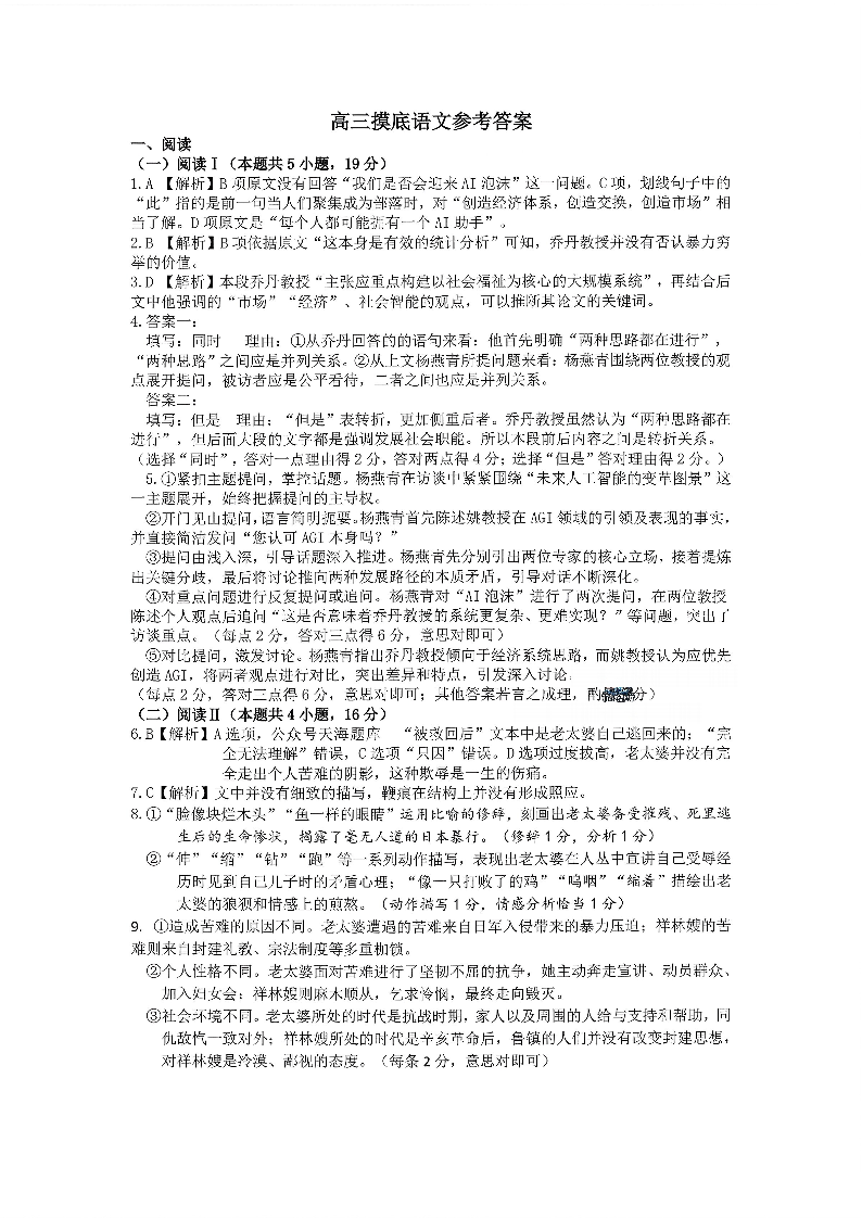语文答案-2026届山东省淄博市第一学期高三摸底质量检测(期末).pdf