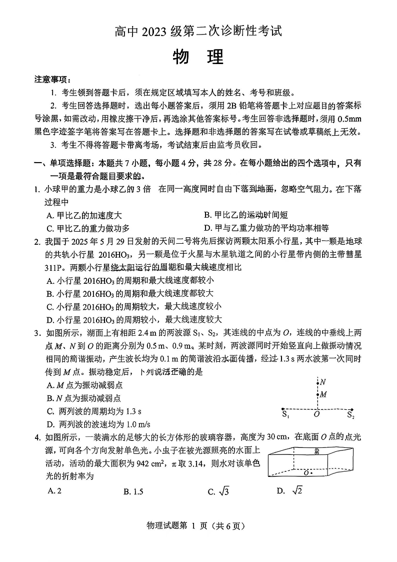 绵阳市高中2023级第二次诊断性考试 物理.pdf