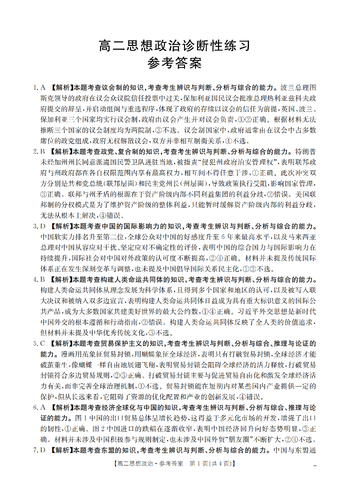 山东省济宁市2025-2026学年高二上学期1月诊断性练习 政治答案.pdf