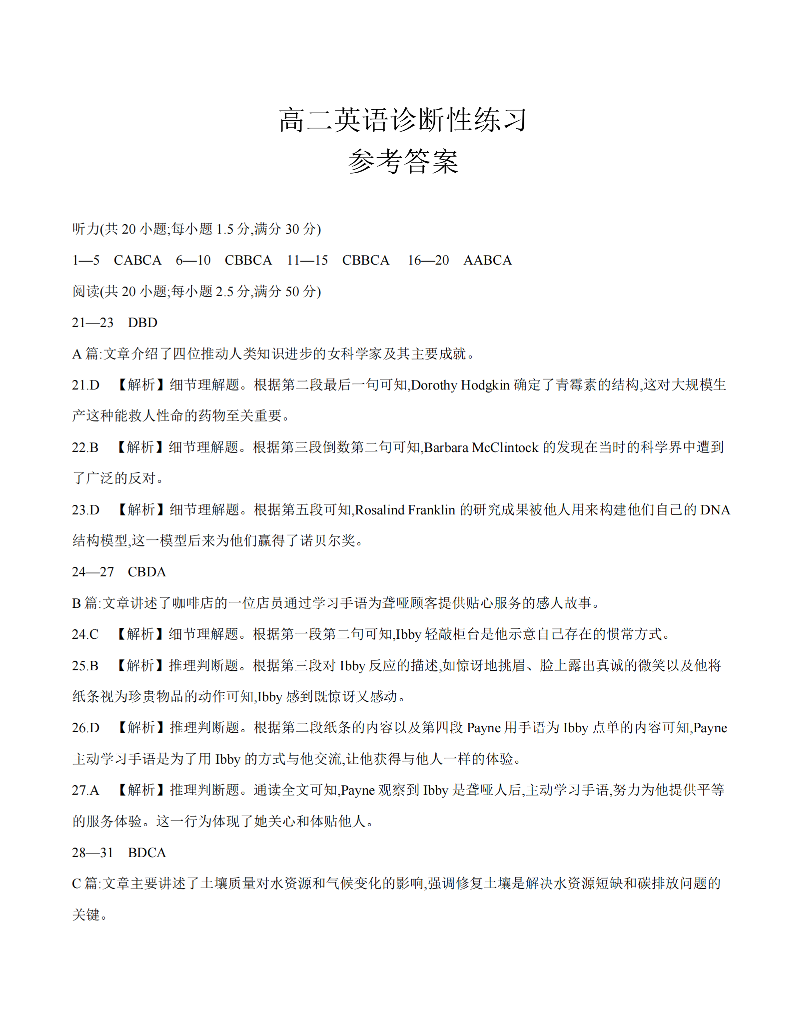 山东省济宁市2025-2026学年高二上学期1月诊断性练习 英语答案.pdf