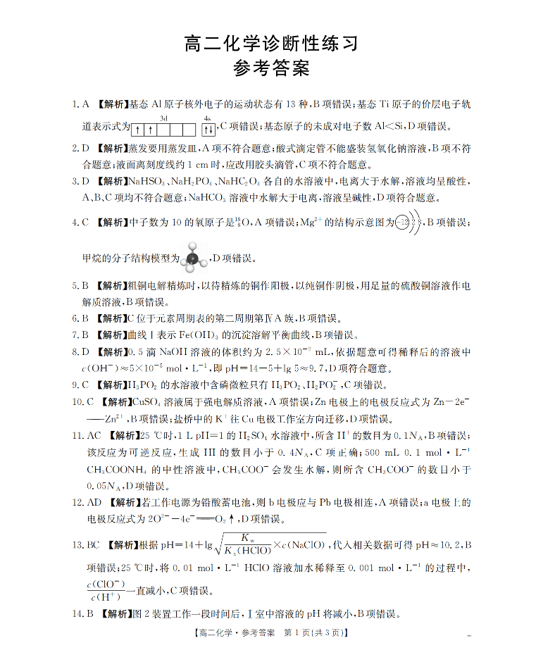 山东省济宁市2025-2026学年高二上学期1月诊断性练习 化学答案.pdf