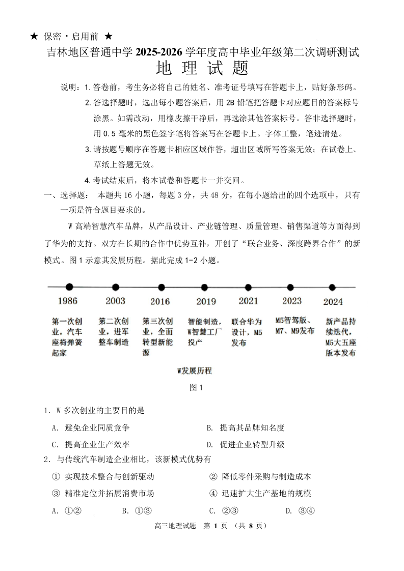吉林地区普通高中2025-2026学年度高中毕业年级第二次调研测试 地理.docx