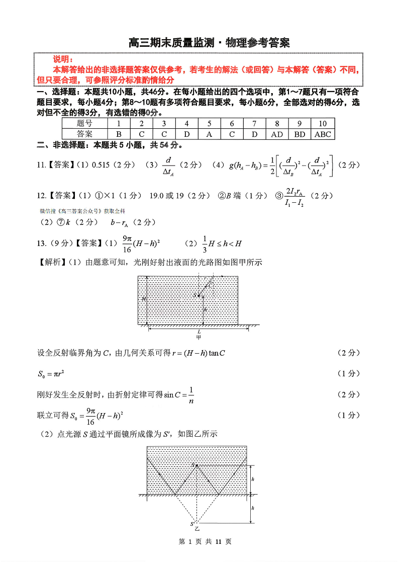 辽宁省县级重点高中协作体2025-2026学年度高三年级期末考试 物理答案.pdf