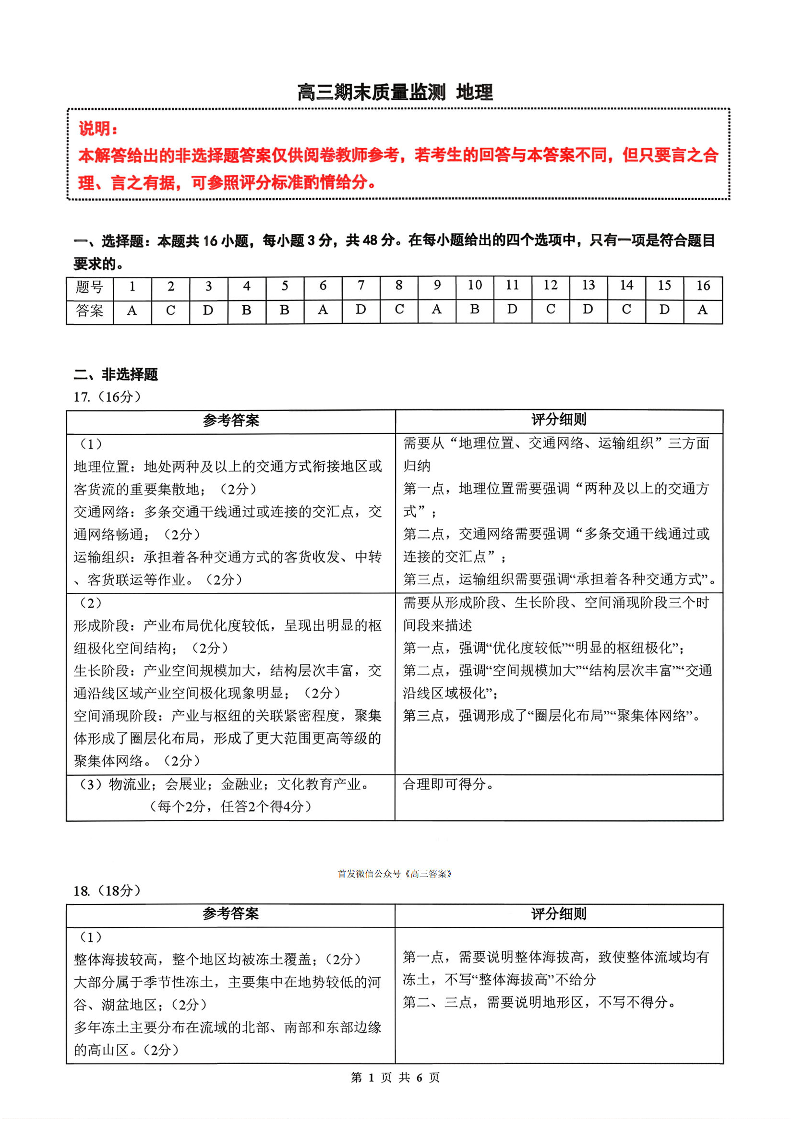 辽宁省县级重点高中协作体2025-2026学年度高三年级期末考试 地理答案.pdf