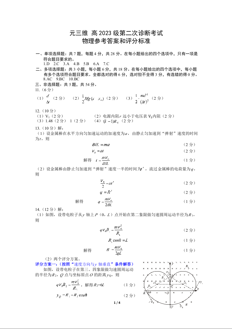 “元三维大联考”2023级高三第二次诊断考试 物理答案.docx