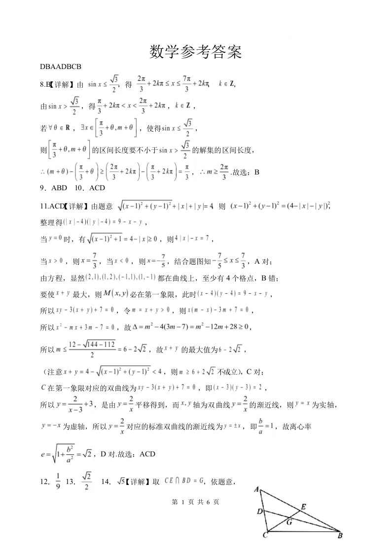 四川省绵阳中学2026届高三第二次模拟考试 数学答案.docx