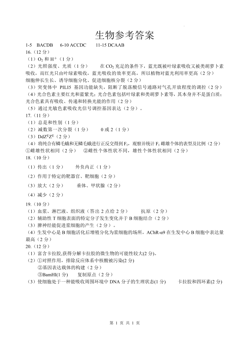 四川省绵阳中学2026届高三第二次模拟考试 生物答案.pdf