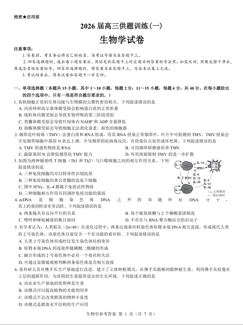 福建省2026届高三供题训练(一)生物试题.docx
