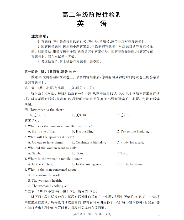 甘肃省陇南地区2025-2026学年高二上学期阶段性检测 英语.pdf