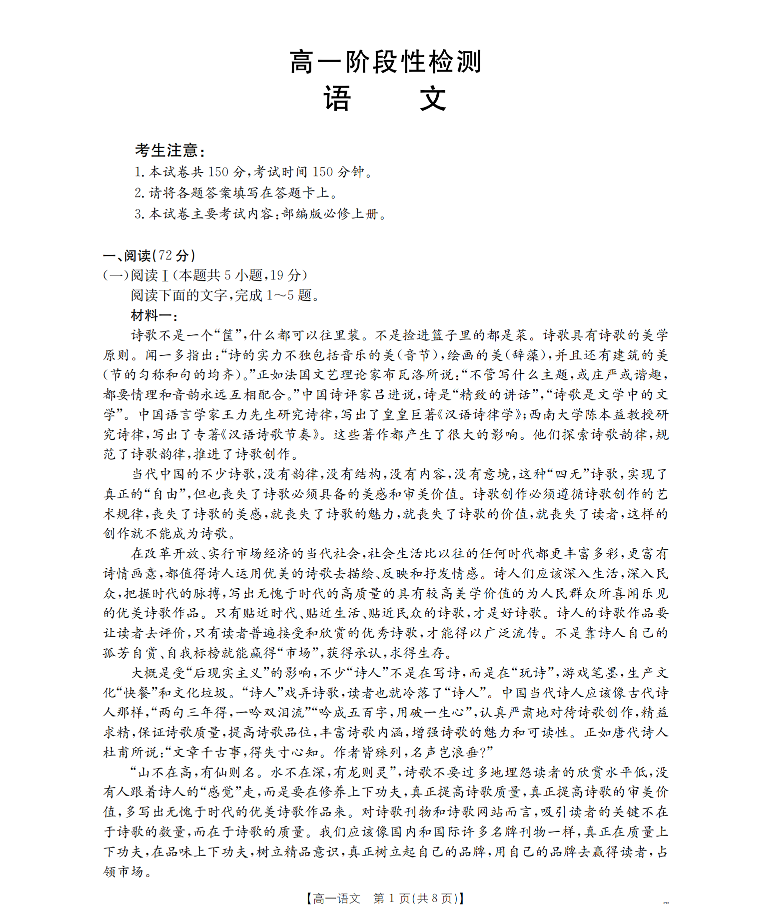 甘肃省天水市2025-2026学年高一上学期1月月考阶段性检测 语文.pdf