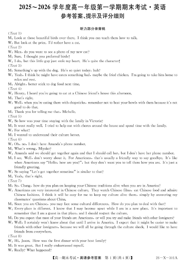 黑龙江省龙东十校联盟2025-2026学年高一上学期期末考试 英语答案.pdf