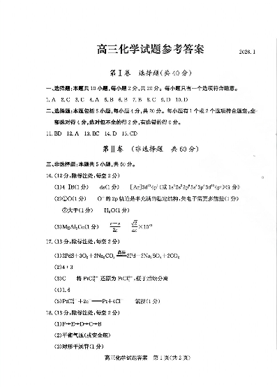 山东省滨州市2025-2026学年度第一学期高三年级期末教学质量检测 化学答案.pdf