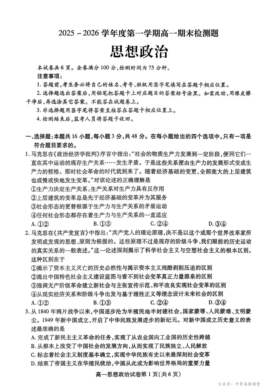 内江市2025-2026学年度第一学期高一期末检测题 政治.pdf