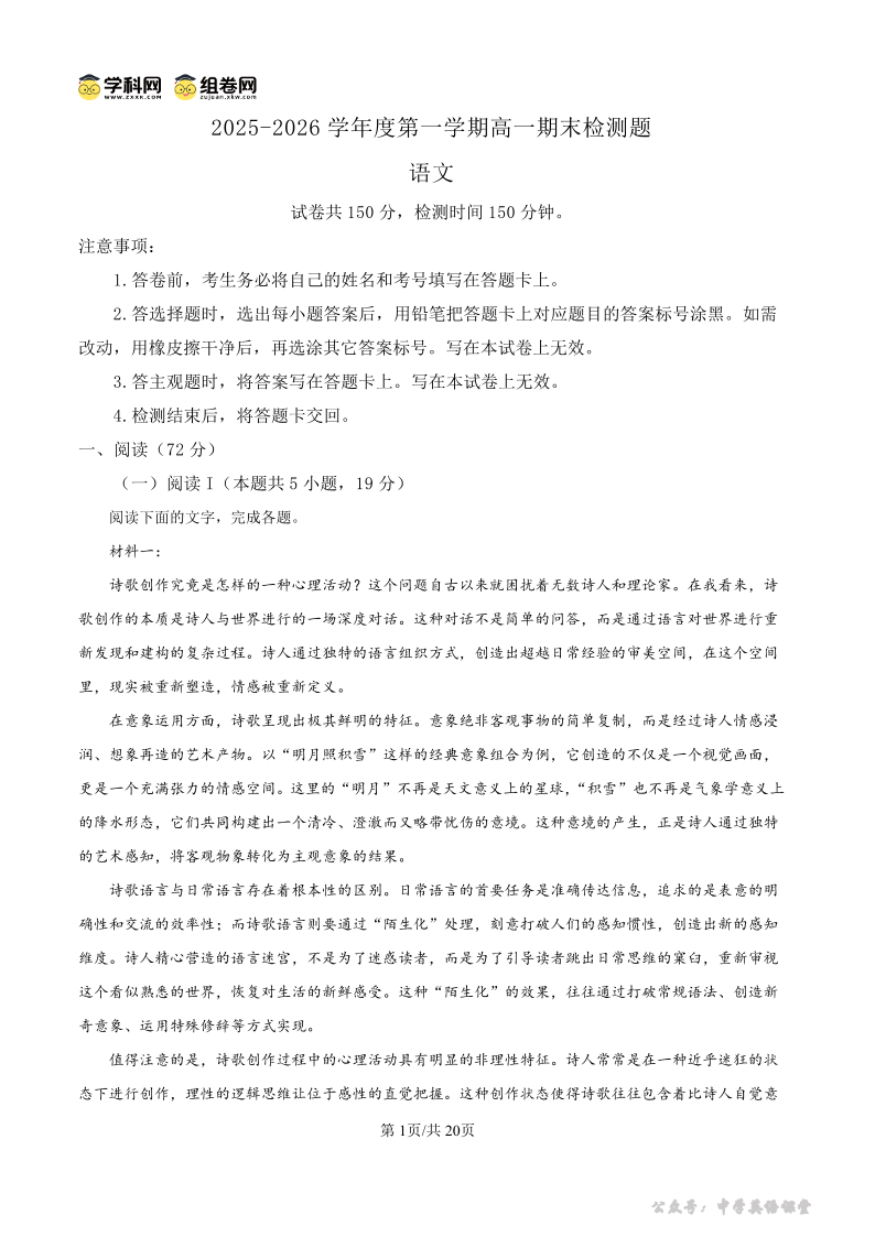 内江市2025-2026学年度第一学期高一期末检测题 语文答案.pdf