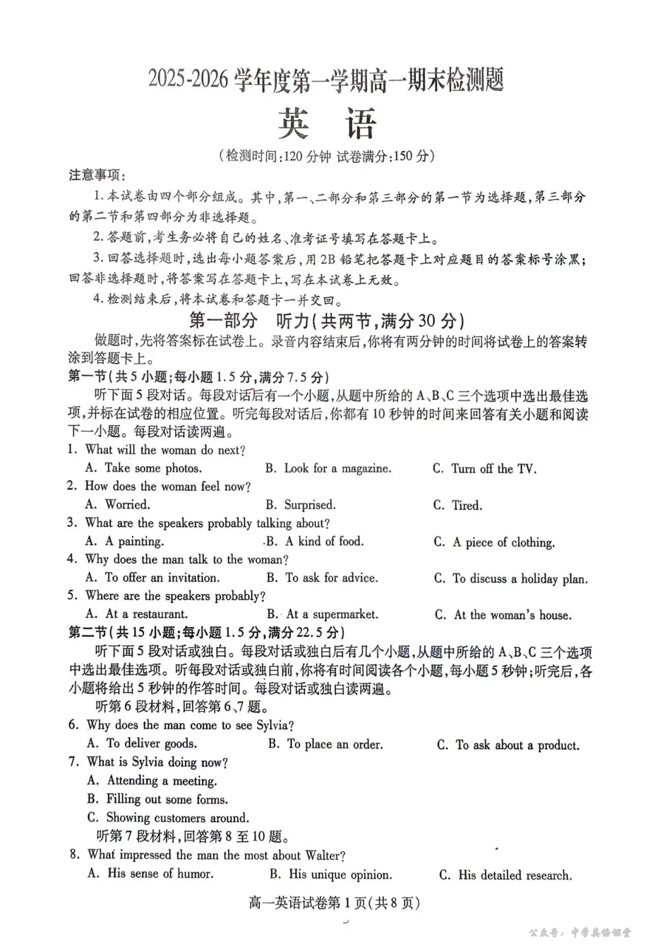 内江市2025-2026学年度第一学期高一期末检测题 英语.pdf