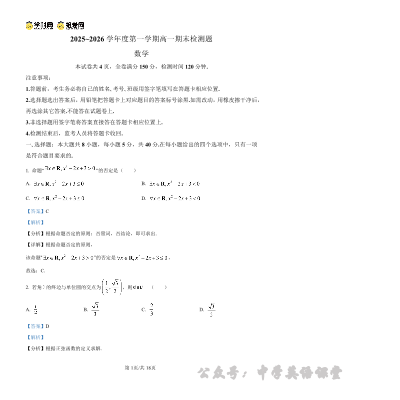 内江市2025-2026学年度第一学期高一期末检测题 数学答案.pdf