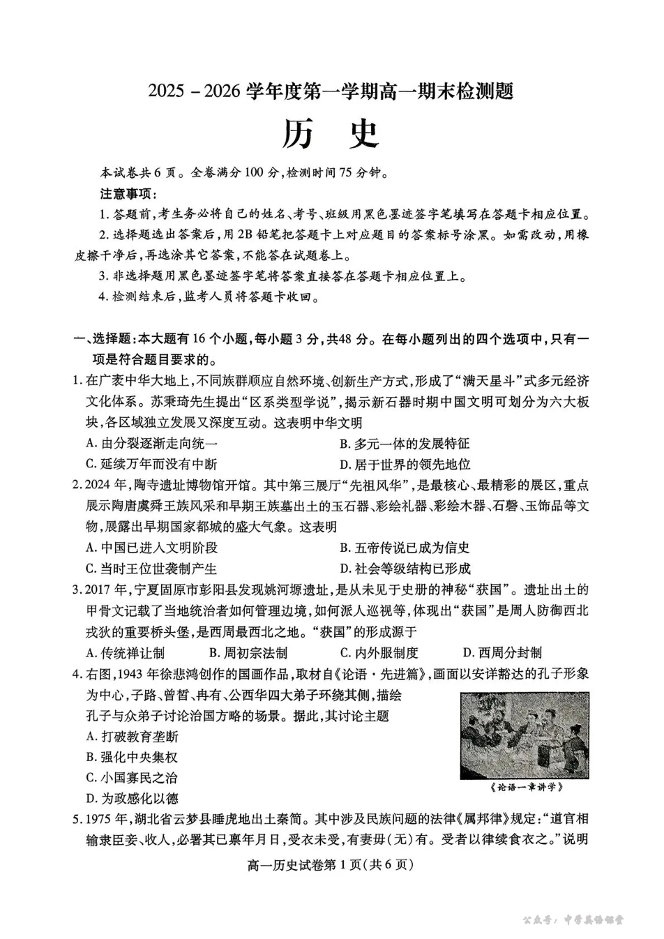 内江市2025-2026学年度第一学期高一期末检测题 历史.pdf