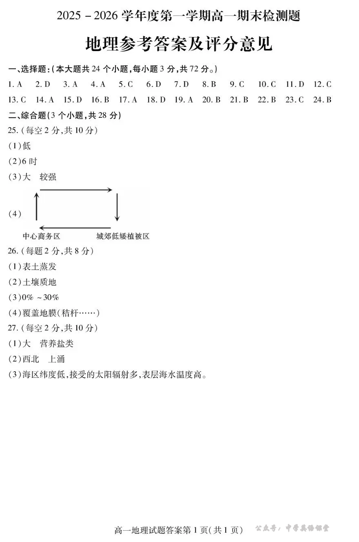 内江市2025-2026学年度第一学期高一期末检测题 地理答案.pdf