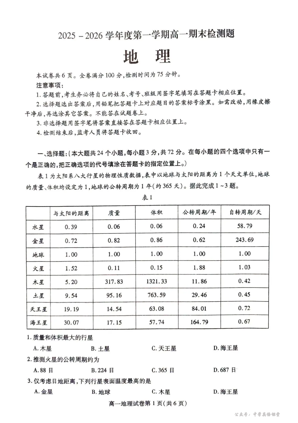 内江市2025-2026学年度第一学期高一期末检测题 地理.pdf
