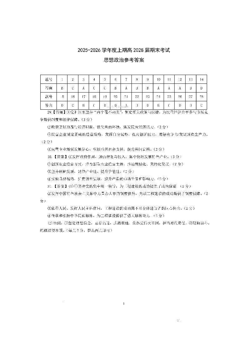 成都市第七中学2025-2026学年度上期高2028届高一期末考试 政治答案.pdf