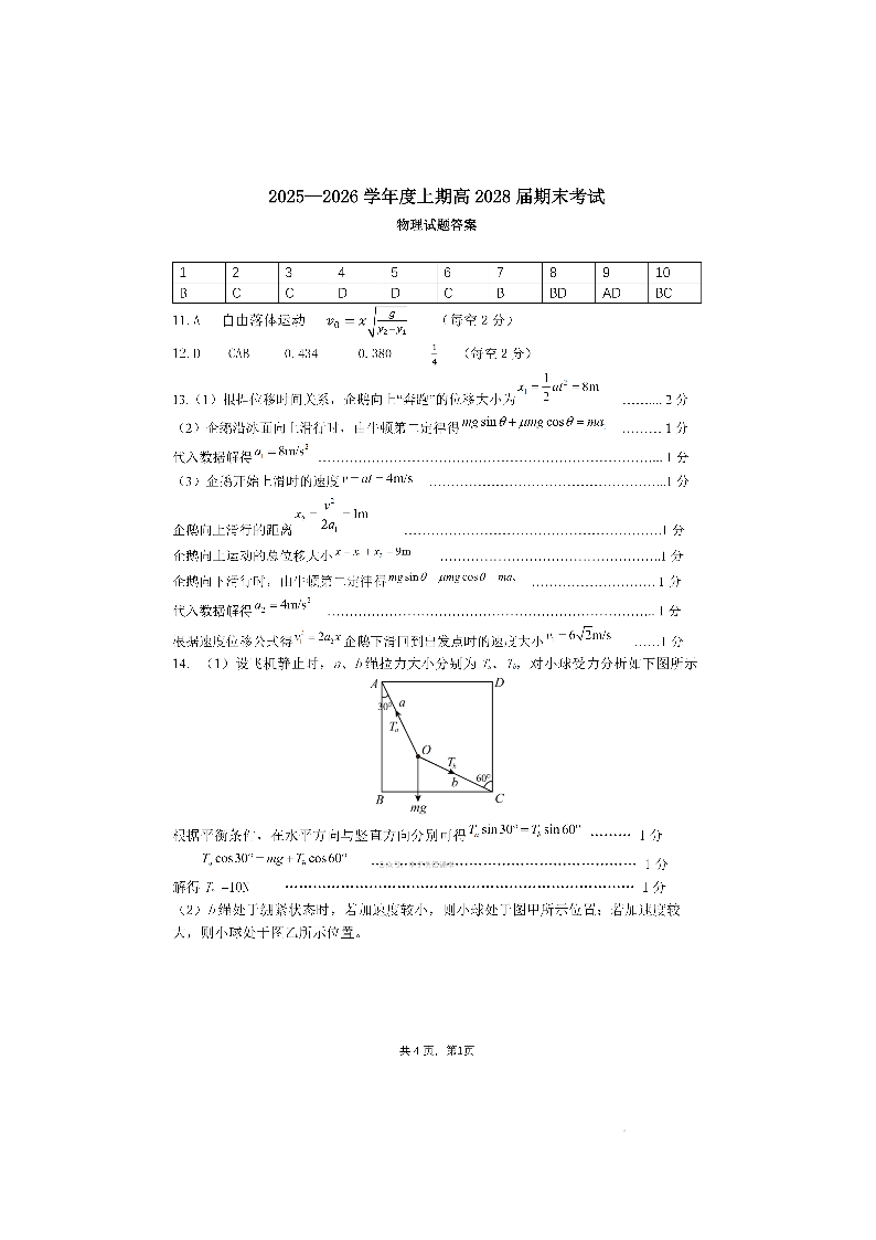 成都市第七中学2025-2026学年度上期高2028届高一期末考试 物理答案.pdf