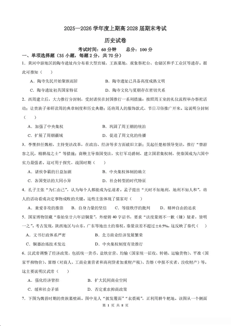 成都市第七中学2025-2026学年度上期高2028届高一期末考试 历史.pdf