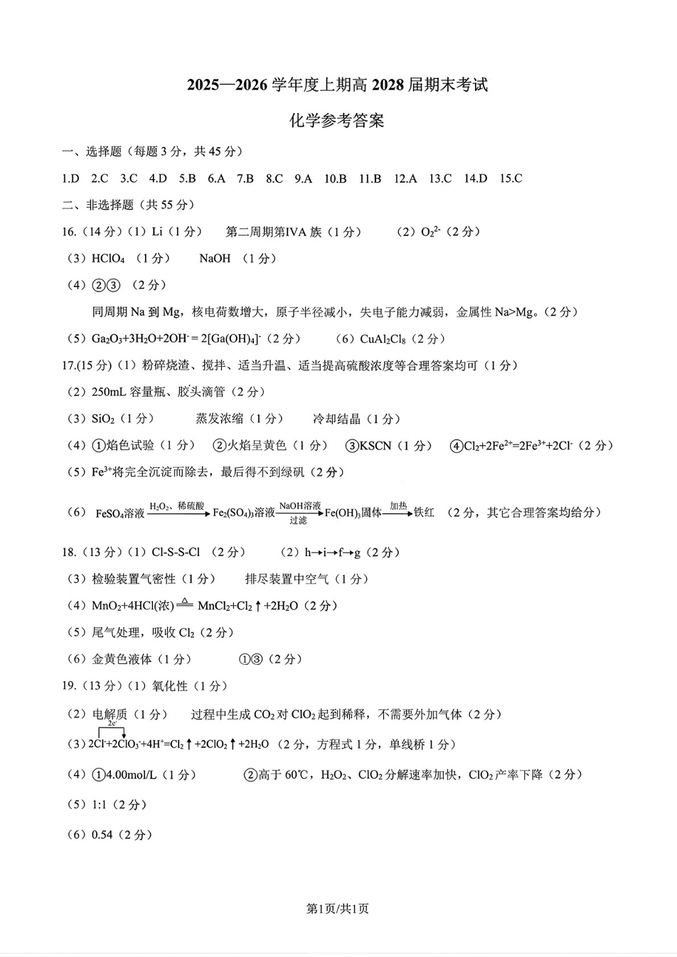 成都市第七中学2025-2026学年度上期高2028届高一期末考试 化学答案.pdf